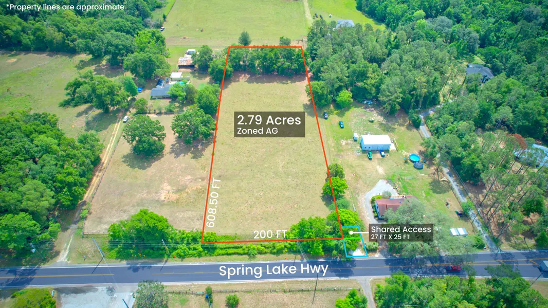 Welcome to 2.79 Acres in a prime location on Spring Lake Hwy! This land is mostly cleared with some scattered oaks, making it ready to build on! No HOA or deed restrictions. Bring your animals to graze or plant your crops on this agriculturally zoned land! This property is already partially fenced. Enjoy the country living on this stunning piece of property, which sits 200 FT +/- above sea level and features a gentle slope and often a gentle breeze. Access to the property is by a shared driveway depicted by the light blue outline; all it needs is a gate! Take full advantage of being just 10 minutes away from essential shopping, banking, and downtown Brooksville. Less than 10 minutes to I-75 and ~15 minutes to the Suncoast Parkway. Some nearby activities include the County Community Center, just a few hundred feet north, which has game nights every Tuesday, and close proximity to Spring L...