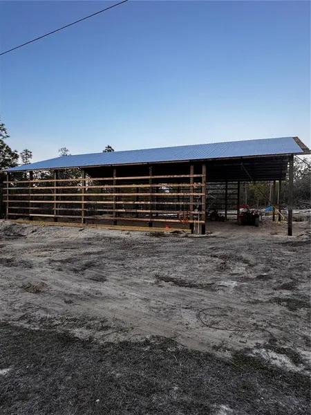 The property includes a permitted 50’ x 80’ x 15’5” structure with a 4/12 roof pitch. Trusses have been upgraded to durable 2” x 2” tube steel. Interior grading is set to 4”, ready for rough plumbing if you choose to continue the barndominium build, or for concrete if you prefer to use the structure as a barn. Barndominium plans are available should you wish to complete the original design.