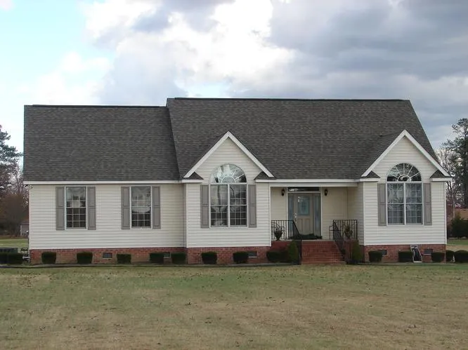 LOVELY ALMOST NEW CONTEMPORARY HOME FEATURING 9 CEILINGS AND CATHERAL CEILING IN GREAT ROOM. OPEN FLOORPLAN W/LOTS OF WINDOWS OVERLOOKING DECK AND NICE ACREAGE OF OVER 3 ACRES. WELL DESIGNED HOUSE WITH PRIVATE MASTER SUITE ON ONE SIDE OF HOUSE AND OTHER 2 BEDROOMS ON OPPOSITE SIDE WITH BATH BETWEEN. MASTER BATH FEATURES JETTED TUB AND PRIVATE DEN IN LIEU OF DINING ROOM, ACREAGE LARGE ENOUGH FOR HORSE IF DESIRES. KITCHEN HAS EATING BAR AS WELL AS BREAKFAST ROOM.