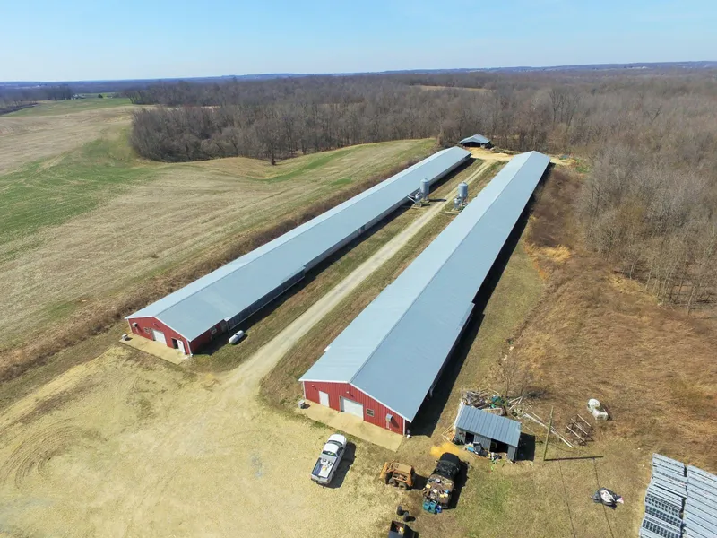 PRICE REDUCED!! This property boasts two breeder barns, currently under contract with Tyson Foods. Housing 20,000 to 22,000 hens and 2,000 roosters, the daily gain ranges from 15,000 to 16,000 eggs! Cumberland controllers keep the barn environments where needed for max production, while Big Dutchman feed lines and Ziggity waterlines ensure that nutritional needs are met. Laying boxes are positioned atop conveyor belts, making egg gathering a thing of ease, consuming less time and maximizing profits. The barns can produce close to 300 tons in litter annually. Every spring, litter is highly sought after to fertilize the fields in front of the crops to follow. In an area dominated by agriculture, chicken litter is in high demand and another great resource that can generate additional income for the new owners! This is your opportunity to bust into the poultry industry, undergoing fulfillin...