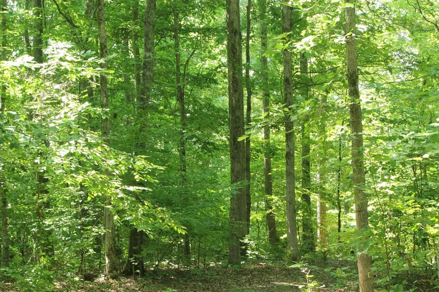 Mixture of hardwoods, clear cut areas, and roads throughout the property.