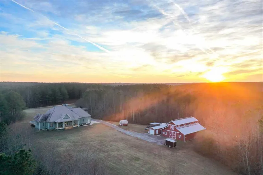 Beautiful 3,100 square foot, off-the-grid home includes 4 bedrooms and 3 baths. Large porches with wooden swings are present on both front and rear of the home. Home and out-buildings sit on 192+ acres of wooded land, approximately 30 of which are cleared.