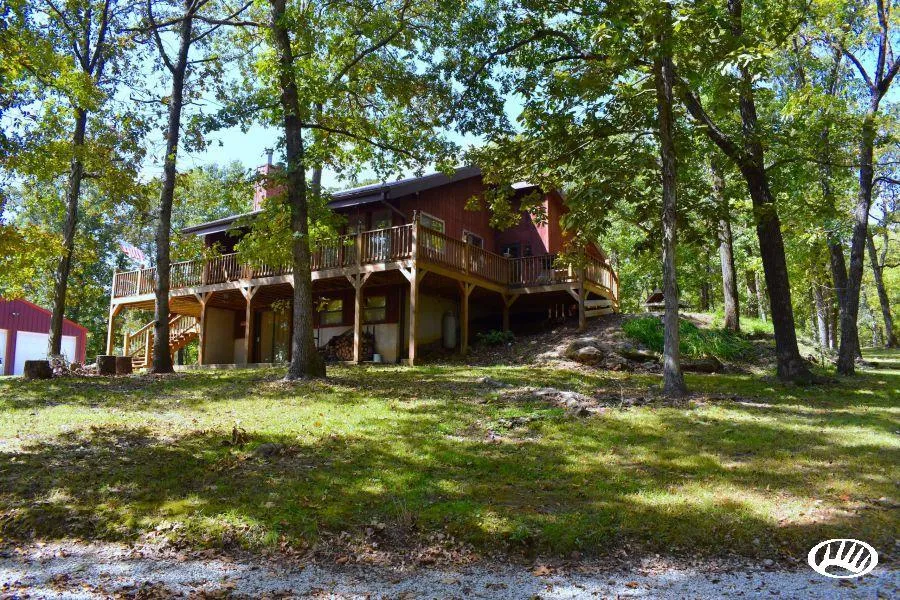 Country elegance says everything about this pretty property. The 2400 sq. ft. home with a walkout basement sits well off the road among several mature oaks. You’ll never tire of taking in all that the outdoors offers on the beautiful deck wrapping three sides of the home. Inside, there are 18’ ceilings in the family room and a stone and black walnut fireplace with a solid oak mantle. The family room and kitchen have tons of natural lighting with glass galore. The master bedroom, a nice sized second bedroom, a nice pantry and utility room are all located on the main level. The mostly finished basement has the third bedroom, a second bathroom, and another large family room. From this family room, you can walk out to enjoy the native stone fire pit. The mostly level land has mature timber, 2 ponds, and approximately 4 acres of open, formerly a grass airstrip. Small game, deer, and turkeys p...