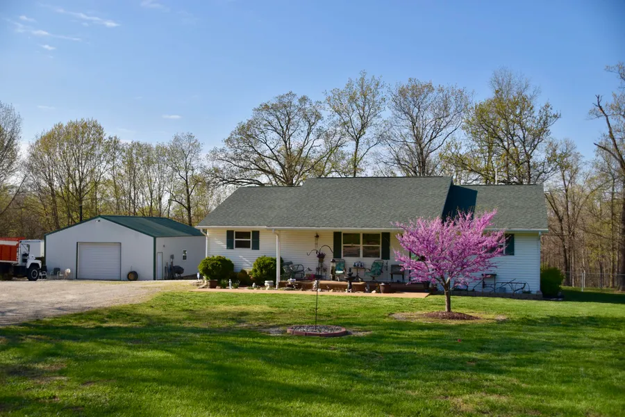 This beautiful place has everything you could want. Semi open floor plan needs nothing. There is 3 bedrooms and 2 full bathrooms and a large sunroom. Split floorplan layout with master having a large master closet and bathroom. HVAC is only 3 years old, 1 year old carpet in the living room and flooring in the kitchen. For the guys, there is newer 30x40 shop that is fully insulated with spray foam and has a wood stove and a man cave in there with a fridge, there is also a storm shelter in the shop floor under the metal lid The other out buildings are: a 3 sided shed that works well as a 3 car garage, as well as a great 16x25 building with electric, heat and air that is right now being used for dogs. The back yard is fully fenced to keep your fur babies at home. The back patio is stained concrete and a great place for enjoying the evening or a barbecue with your friends with plenty of room for entertaining. All decking is maintenance free Trex. Well designed easy to care for landscaping. Large beautiful mature trees provide shade. All this on 4.8 unrestricted acres