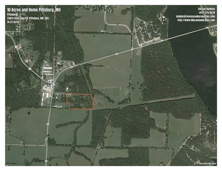This home is over 1300 sq. ft. and sits on 10 acres right off Hwy 64 in Pittsburg! This is half a mile past Nemo Bridge, crossing over Pomme De Terre Lake! With 3 bedrooms and 2 bathrooms, this home boasts an open floor plan, cedar walls and a brick fireplace! The home is well-kept with a screened in porch and manicured lawn.