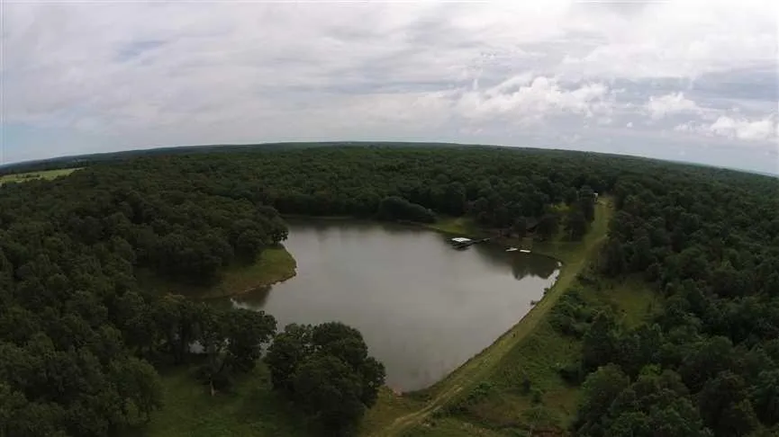 This is one of the nicest places you will ever see. What a farm! 790 acres of some of the best deer and turkey hunting you will find in the state. Rolling hills, creeks are all over this farm. 3 ponds with a huge 8 acre stocked lake, with a nice 16 x 20 boat dock. Fully stocked, will be some great fishing, owner has caught some lunkers out of it. Really nice 1250 sq foot cabin, with 2 bedrooms, 1 bath. Has a wood fireplace, nice big kitchen and living room and a big loft. Front covered porch overlooking the 8 acre lake. Also has a 30 x 72 pole barn for the tractors, boats and toys. This farm has it all! Owner says deer and turkey are in the yard of the cabin all the time. Trails run through the farm to give great access and trail riding will be a blast. Owner has spent a ton of money clearing foodplots and getting them established. They seem to be everywhere, with some really nice fixed shooting houses in and around the food plots. This type of recreational ground , with great timber, water, and this kind of acreage is hard to come by. Located in Hickory county, and in between Cross Timbers and Climax Springs off of YY Hwy. For more information contact Mike Stoner at 573-774-9775