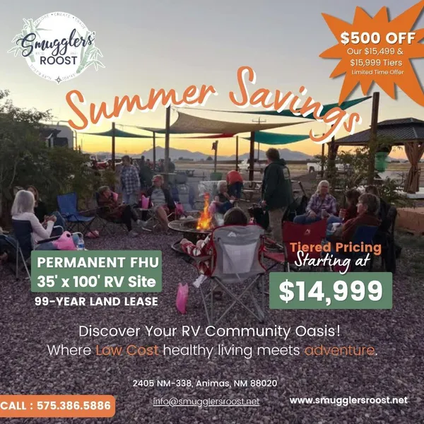 Located at Smugglers' Roost in Animas, NM (2.5-hrs from Tucson, AZ or El Paso, TX)
