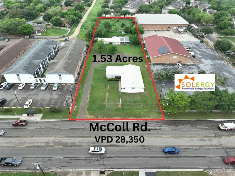 Great commercial opportunity with frontage along McColl Road. Situated on 1.5 acres just south of Nolana Avenue on McColl Rd., the property features a church and a building located behind it. Positioned at the intersection of McColl Rd. and Nolana Ave., this property benefits from high visibility and accessibility, serving as a crucial transportation hub in the McAllen area.