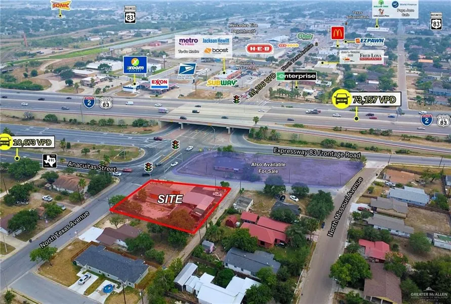 This excellent commercial property sits on a +/- 0.31 acre corner site at the corner of Expressway 83 (I-2), Texas Avenue, and FM 491, one of the busiest intersections in the area. Expressway 83 is major highway that connects travelers from Cameron County to Starr County. Texas Avenue is Mercedes’ main road and the city’s main commercial corridor, and FM 491 carries travelers to and from the Elsa/Edcouch area. The site is located on the North side of the expressway, at the entrance of the Rio Grande Valley livestock show and sees over 84,000 vehicles per day at the crux of its three roadway intersection. Due to the expanding nature of this area, commercial properties see a consistent value growth as commercial demand and viability continues to increase. This site is located in a strategic and ideal location in this upcoming trade area.