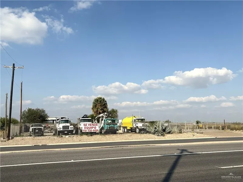 Commercial property located 1 1/4 miles east of US Highway 281 (I-69C). With access to I-69C, it is easy to drive north to the Houston/San Antonio area, south to I-2 (Expressway 83) and east to Harlingen/Brownsville/Padre Island, west to McAllen/Laredo, or south to the International Bridges and into Mexico. It is currently being used for truck and tractor/trailer sales. It is also used for repairing the inventory of trucks and trailers. Has a large canopy with approximately 6599 square feet of a tin-roof canopy built over a steel frame with a cement slab floor, as per HCAD. Some of the open areas have gravel and rock on them. Trucks and tractors that are for sale are parked in the front part of the lot. There is also a small frame structure that could be used as an office or for a security office. The property is surrounded by an 8-foot Hurricane Fence.