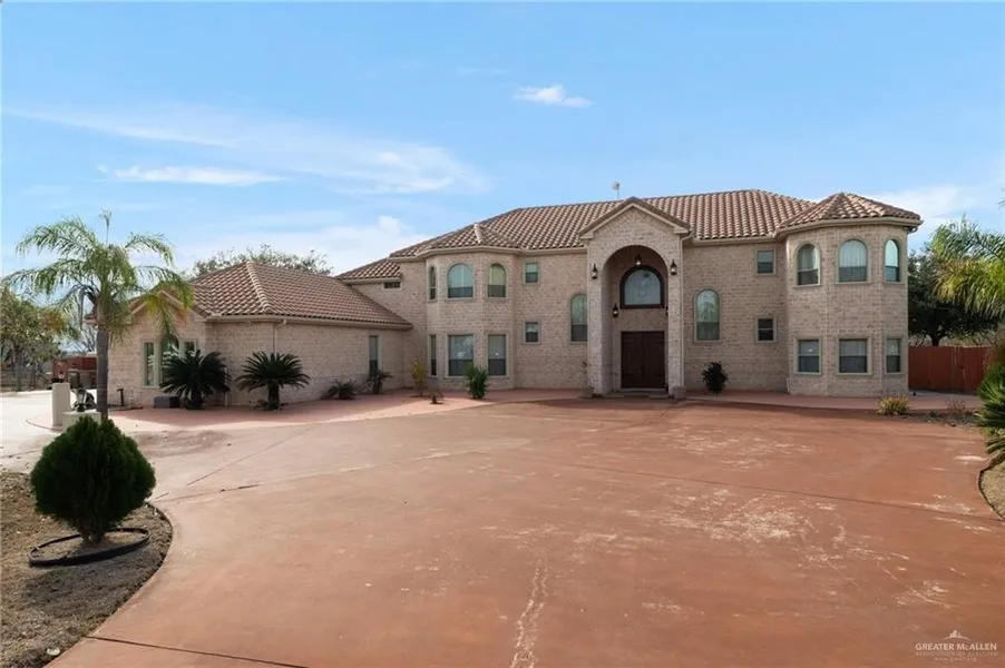 Welcome to 2914 Horizon Trail, Edinburg, Texas—a rare blend of Big Country living with modern convenience. This 7-bedroom, 4.5-bath estate offers 7,500+ sq. ft. of luxury, perfect for comfort and entertaining. The split floor plan ensures privacy, while the open-concept design connects the kitchen, family room, and formal living areas. Upstairs, 4 spacious bedrooms lead to a glorious balcony for sunset views. The kitchen and baths feature granite countertops, with wood, tile, and laminate flooring adding warmth throughout. A grand wood double-entry door sets the tone for elegance, while the 3-car side-entry garage and landscaped front yard with palm trees enhance the curb appeal. Beyond the cedar fence, native mesquite trees provide privacy and natural beauty. A true must-see esp. with price per sq ft. —schedule your private tour today!