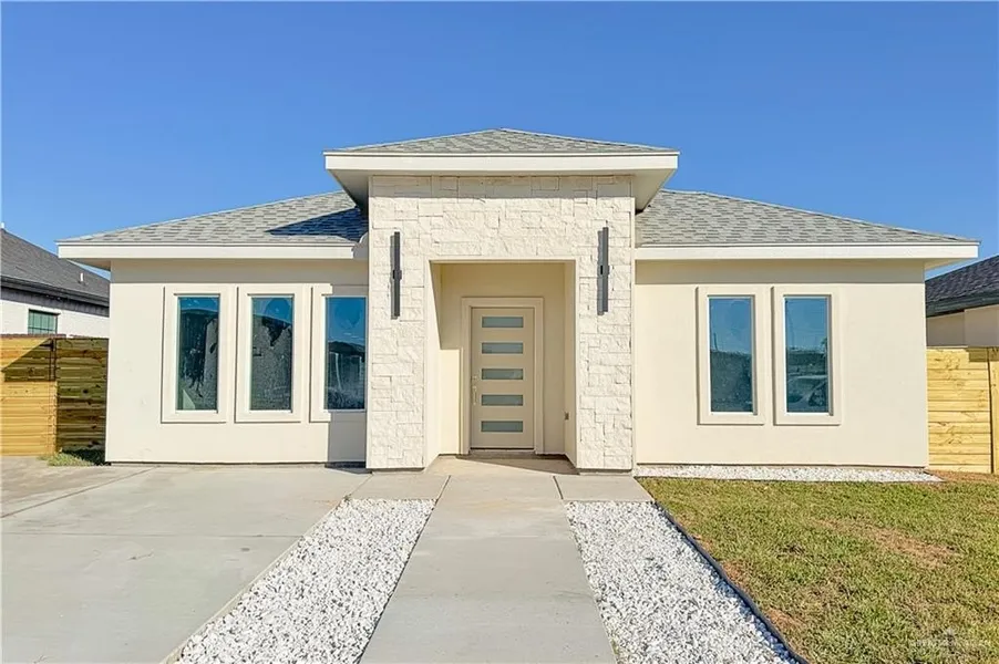 New 2025 construction in La Joya! This 3-bed, 2-bath home features approx. 1,400 sq. ft. of living space with quartz countertops, custom cabinetry, and a waterfall kitchen island. Exterior includes stucco finish, two-car driveway, full fencing, and complete landscaping. Near Walker Lake, Expressway 83, La Joya High School, and local dining options. Modern style and great location make this home a must-see!