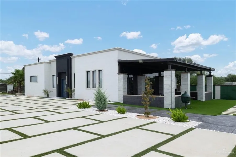 Welcome to your dream home—where modern luxury meets everyday comfort and style. From the sleek curb appeal with concrete pavers and turf, to the covered carport and backyard pavilion with a built-in BBQ area, every detail is designed for beauty and function. Inside, soaring ceilings, custom woodwork, and a timeless black-and-white palette define the open-concept layout. The gourmet kitchen, elegant dining area, and spa-inspired master suite create a perfect blend of sophistication and relaxation. With flexible spaces for living, working, and entertaining—indoors and out—this home is built for both comfort and unforgettable moments.