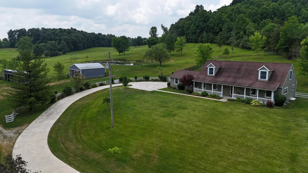 Located in the rolling hills of Southern Highland County! This 44.942 acre farm offers 16 acres of mixed tillable and fenced pastures, exercise pens, 28 acres of woodlands and 2 stocked ponds with large mouth bass, channel cat, and blue gill! Highlighted by a 2433 sf. cape cod home on a full poured wall basement! The spacious great room serves as a family room and dining area while 6 large windows fill the home with natural light! The attractive oak kitchen boast stainless steel appliances, recessed lighting, Corian countertops, mosaic tile backsplash, and pantry! This 3 bedroom, 2 1/2 bath home offers a formal living room, home office, master bedroom suite with a tile step-in shower! Glass French doors, oak trim and doors, walk-in closets and more! A covered front porch, private patio, and a covered paver patio will be the gathering place for family and friends! A winding concrete driveway and parking area connects the two car attached garage! A 14 x 60 farm machinery barn and a 30 x 40 livestock barn equipped with electric, wood stalls and a hayloft are set up for all species of livestock! Little West Fork Ohio Brush Creek flows through the front of the farm and a park-like setting has been created along the water's edge! This farm offers a perfect blend of all the amenities and natural resources you need to enjoy country living at its finest!