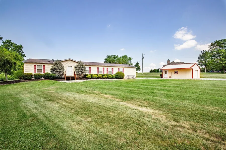 Over 2000 sq ft and meticulously kept w/ open floor plan,this is a must see!Hard to find 4-5 bedroom beautiful home on 1.3 acres surrounded by farm land for privacy! Master bedroom w/large walk in closet and bonus room attached that could be used as den/nursery.Extra large kitchen w/ tons of cabinet space. 2 new decks. 20x24 pole barn with electric