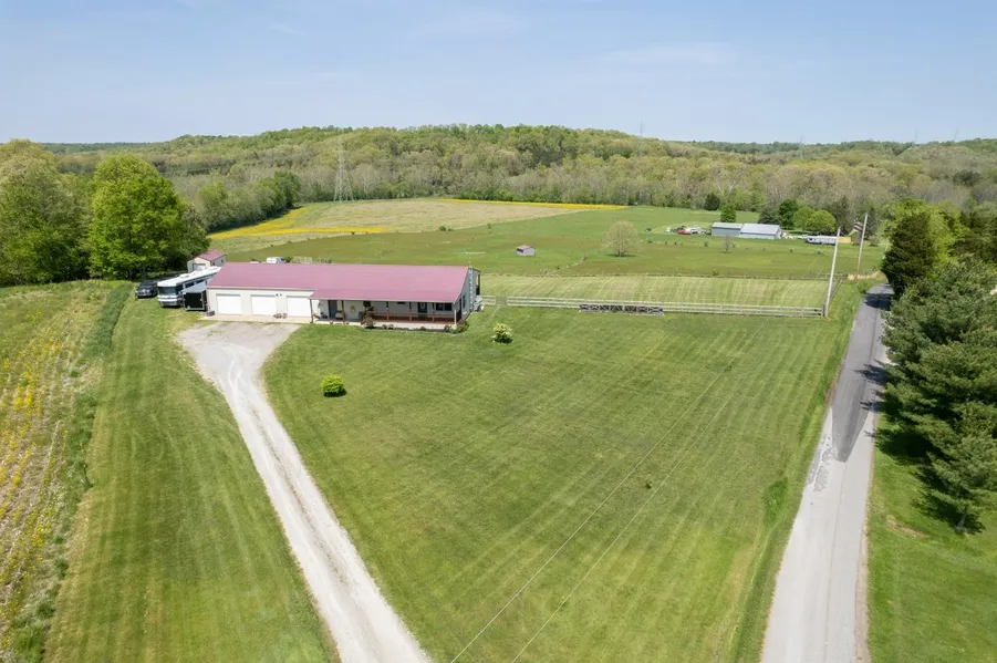 Mini farm 8.847 acres, 3 separate fields all fenced with water and livestock shed! Metal sided 3 or 4 bedroom home, 2 1/2 baths. Huge 3 car attached garage plus a lean to shop or machinery storage. Covered wrap around porches with beautiful views of the land! Master suite has adjoining bathroom. Open living room-kitchen with beautiful oak cabinets. Pellet stove to warm you up on cool evenings. This is a must see!