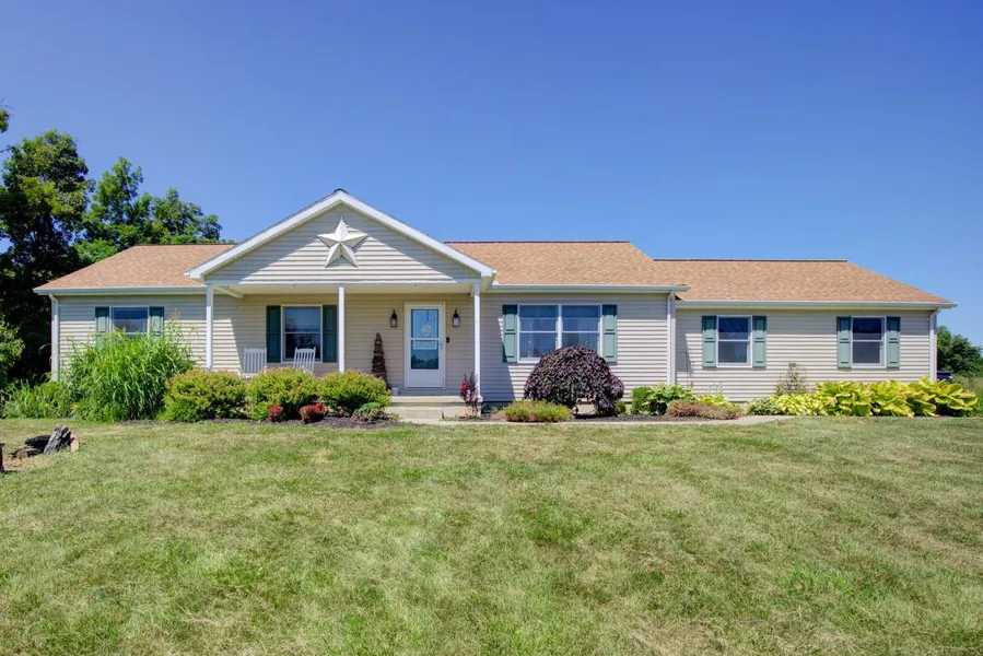 Excellent condition! 3BR, 2B vinyl sided 1 story home. Full poured wall basement plumbed for 3rd bath! Oak hardwood floors, Master BR suite, walk-in closet & walk-in shower. Oak kitchen w/counter bar, pantry & recessed lighting. Sliding doors open to 4 seasons room. Central vac & geothermal heating. Attached 2 car garage. 2.111 acres, new landscaping