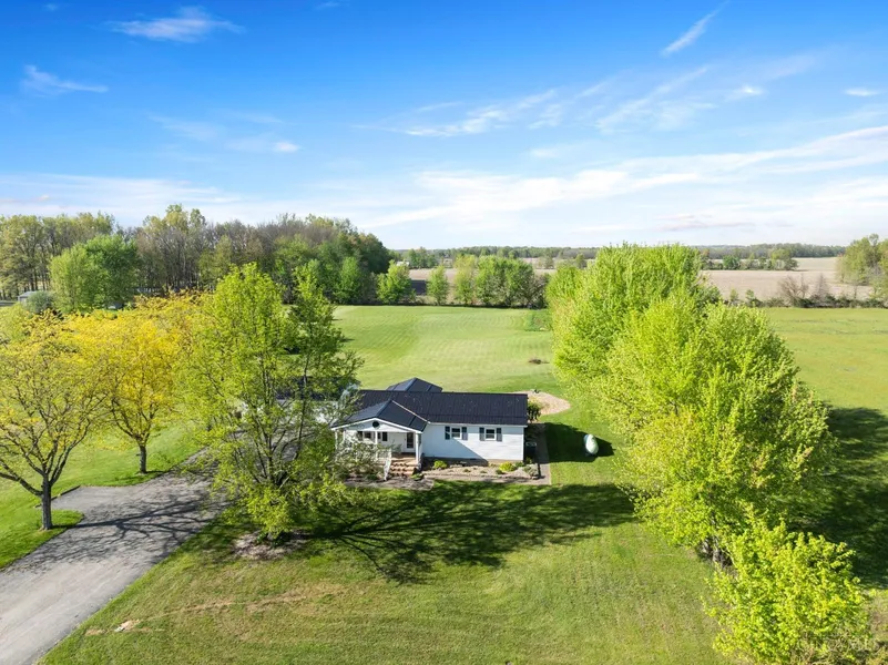 Nestled on a spacious 2.5-acre lot, this inviting 3-bedroom, 1-bath ranch offers the perfect blend of community and rural charm. Inside, you'll find a clean, well maintained and comfortable home. Several recent upgrades include a new metal roof in 2021, new HVAC in 2023 and new HWH in 2020. The star of the show is the awesome acreage; lots of potential for a hobby farm, space to create a backyard oasis or just enjoy the natural beauty that's already there! In ground invisible fence already installed for your furry friends. Plus, a two car oversized detached garage. Whether you're looking for peaceful country living or room to expand, this well-maintained home is an ideal retreat with endless possibilities.