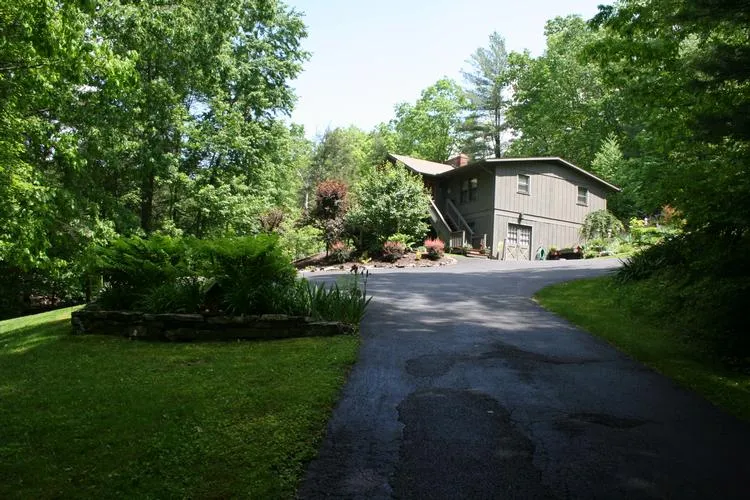 The driveway is paved up to the garage and to the side of the garage for recreational vehicle storage. Though in the forest there is yard with excellent sun exposure.