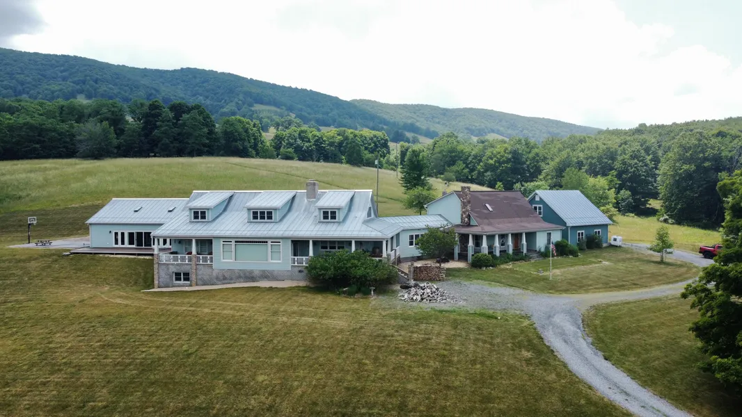 Private and secluded this property provides, meadows for hay production, pasture land for grazing. Current owner mows grass, does not have livestock. Spring water travels off the high hills to the house. Rain water is collected from metal roof into in-ground tank for use in gardens and salt water pool. The houses are built sparing no detail for workmanship such as hand scraped maple flooring, hardwood flooring, newer house has Thermador appliances, and sub-zero. All custom made mill work, doors, A multitude of Anderson windows. Breezeways to the pool house and house built in 2005. Natural woods, warm finishes throughout both homes. Larger home is over 6000 sq. ft. other home just over 2000 sq, ft.