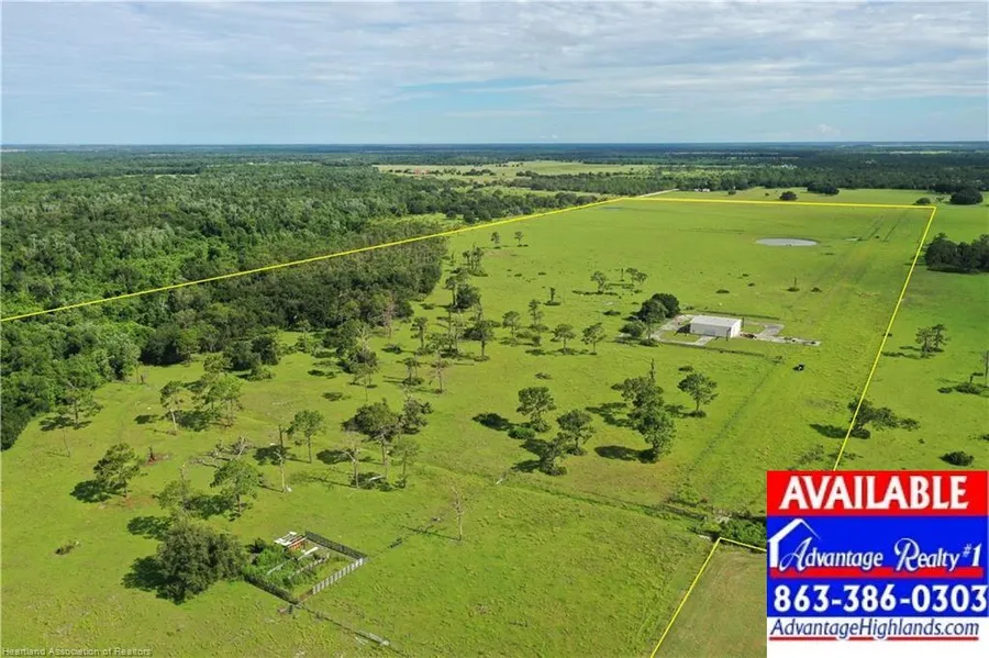 Fly-in 122+-Acre Ranch Retreat with 4000+-SF Hangar bahia pastures fenced & cross fenced, cattle pens. Surrounded with ideal wildlife sources:lush high protein hay fields to south, heavy woods to east & large tracts to west. 1000+ft paved road frontage. Perfect for home site in oak hammock behind air hangar then develop in future with five 20+acre fly-in ranchettes keeping your premium home site in back or sell for more potential profit.