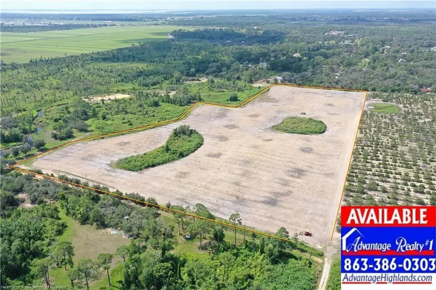 20 acres of beautiful high & dry land nestled within upscale ranchette homes with a adjacent scenic seasonal creek between this property & thousands of acres of wooded wildlife habitat & lush sod farms. in the Moon Ranch area of Sebring, Florida. This 20 acres is currently a cleared Hamlin grove that can be purchased as 10 acres or 20 acres. This would make a nice home site looking over the Lake Wales ridge drop off.