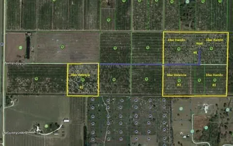 50 -Acres of Producing Citrus Groves! Hamlins 30 -Acres/Valencias 20 -Acres, 6 inch/ 1300ft deep well, John Deere power unit, green micro jets, waters entire 50 acres at one time. Tree avg. age 10 yrs, most are on Carrizo root stock. This is a good producer and good investment. Call soon before it is sold.