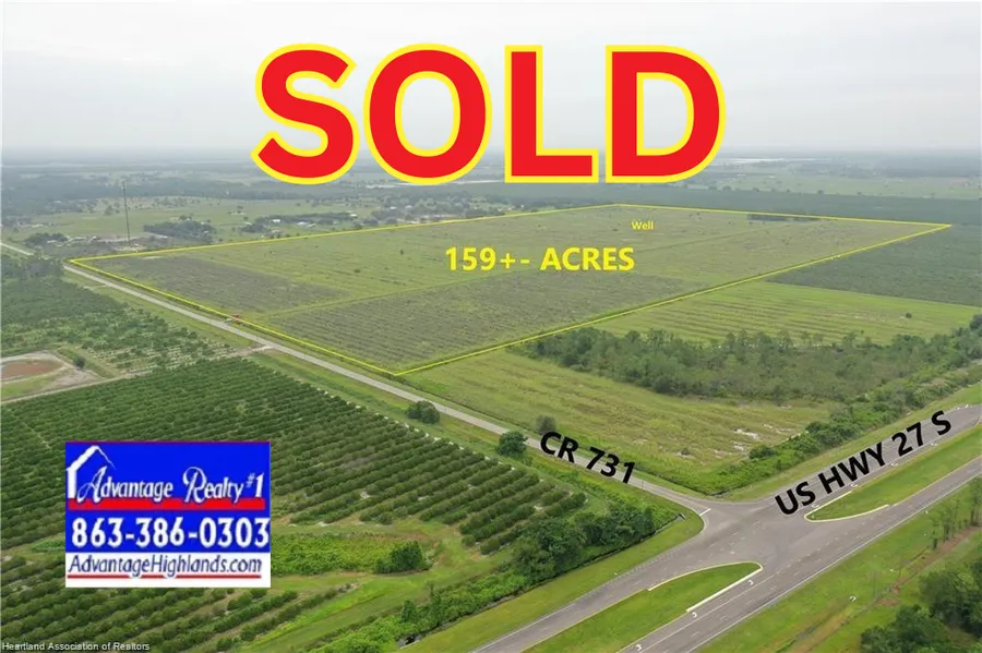 159+-acre Prime Farm by Corner of US 27 & CR 731 with wells, pumps & irrigation in place. Plant your new crop or divide into 10-20 acre ranchettes for Potential Profit. Two 12" diameter wells, 1,650 feet total depth cased to 750 feet. Two John Deere 152 horsepower, 6 cylinder diesel engines with two 550 gallon above ground steel diesel fuel tanks. The diesel engines are on concrete slabs. Tree rows were 25' wide tree settings currently most of the grove has been cleared with high grass ready for cattle & fencing. Plus, there's a nice area of oaks and pines at the rear ideal for your 1st homesite. Located in Central Florida within a 2.5 hour drive of most metropolitan areas including Miami, Sarasota, Tampa, Naples and Orlando. Ideal for all those looking to escape the city life & relax in the quiet country lifestyles of ranching, farming, recreating. Will sell 48 acres or 110 acres sepa...