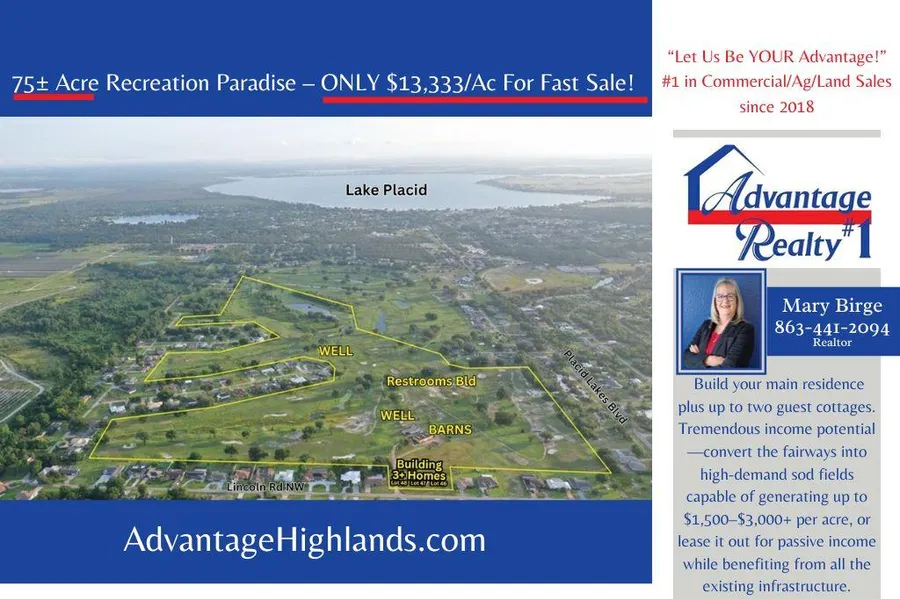 Tremendous income potential convert the fairways into high-demand sod fields capable of generating $1,500$3,000+ per acre, or lease it out for passive income while benefiting from all the existing infrastructure.