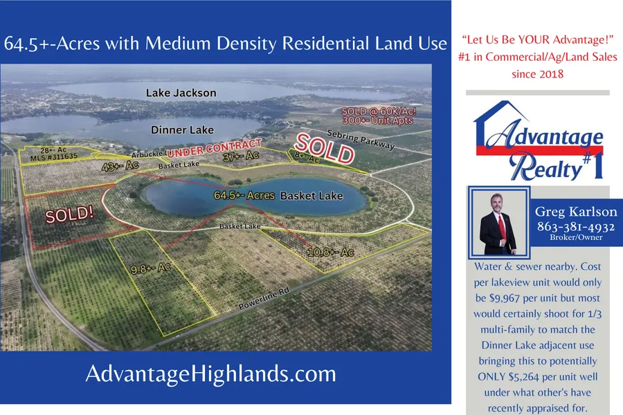 Development proforma metrics if one rezones for simply 3 units per acre the cost per lakeview unit would only be $9,967 per unit but most would certainly shoot for 1/3 multi-family to match the Dinner Lake adjacent use bringing this to potentially ONLY $5,264 per unit well under what other's have recently appraised for.