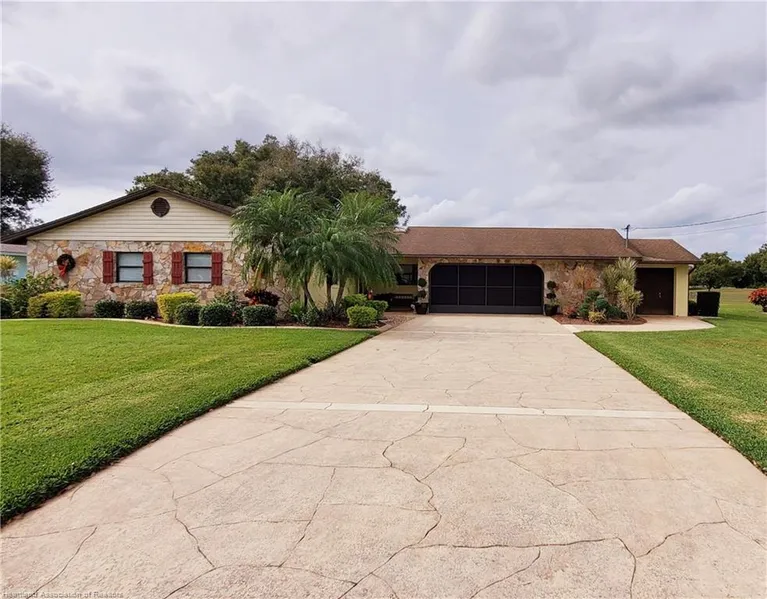 A beautiful home with 3 Bedrooms, 2 1/2 Baths, 2 car oversized garage with screen and extra storage and a separate golf cart garage and a Fireplace, in the charming Rivergreens Golfing Community. Pride of ownership shows throughout, as this home has been well maintained, with some updates. Kitchen cabinets/countertop updated in 2010 (approx), newer refrigerator/stove. This home has a beautiful view of the golf course that is in the rear of the property, finished driveway, gorgeous landscaping and thick, St Augustine grass. Lovely curb appeal and no HOA.