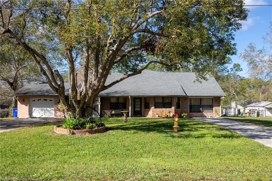 Who wants to live on a Oak Canopied Tree-Lined Street, In the Country, Nestled amongst Mother Nature, In An Area Where Deer & Golf Carts Freely Roam, Fishing Boats Slowly Cruise Across the Rippling Water, Trolling for some Trophy Bass?? This is THE PLACE!! Come to the Country, and live the Serene Affordable Florida Lifestyle ...This 3 bedroom, 2.5 Bath Home with Bonus Rooms that could easily be 4 bedroom, is situated on Nearly 1 & 1/2 Acres! This home could easily be a Multi Generational home as there is 2 bedroom 1 bath and Separate Living Room upstairs and Downstairs there is a Master Bedroom & Bath with Sitting Room, and a Bonus Room ( Need a Separate Room to Work From Home?) and a half Bath. Huge laundry! The Back Screened Room is great to View the Nature All Around, Gorgeous Water Feature and Partially fenced, Garage and a Screened Breezeway, Multiple Sheds for More Storage! Live th...