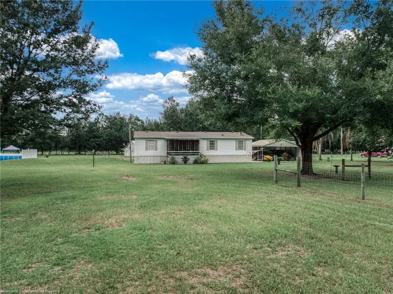 A Serene Country Retreat: Discover your peaceful haven on this expansive 5-acre property featuring a spacious 3-bedroom, 2-bathroom manufactured home featuring many updates including the kitchen. Enjoy the tranquility of outdoor living on the front and back screen porches, both equipped with ceiling fans for added comfort. The property also boasts an extra large workshop/shed with an air-conditioned room and a convenient 30-amp hookup for your RV and running water. For additional storage and protection, there's a 2-car carport along with a mobile/moveable barn and a small livestock barn. The property is already cross-fenced, making it perfect for pets or livestock. An Outdoor Oasis: Escape the hustle and bustle in your own private outdoor oasis. Take a dip in the above-ground pool or enjoy the serene beauty of the stocked pond. The property's peaceful setting provides a tranquil escape. Recent Upgrades: This home has been meticulously maintained with recent upgrades, including a new roof in 2022 and a new HVAC system in 2023. The left side of the home features new windows, skirting, and siding. For added peace of mind, the septic system was recently emptied and inspected. There is new carpet in the bedrooms and new Solar Lights in front/back of home, carport and the pond area. This property has also been appraised, providing you with a clear understanding of its value. Don't miss this opportunity to own your own piece of paradise!
