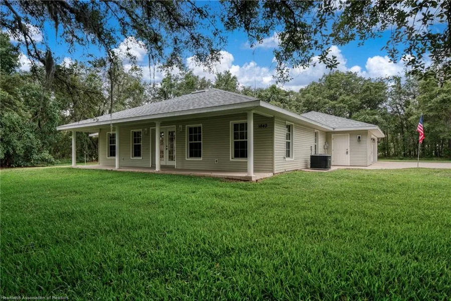 Discover this meticulously maintained, one-owner, custom-built concrete block home, nestled on a corner lot within the desirable Avon Park Lakes community. A 3 BR/2.5 Bath/2 Garage, constructed in 2006, this property offers a unique blend of privacy, space, and natural beauty. Expansive Corner Lot and Serene Settings: situated in the middle of ten lots, the property is adorned with mature oak, avocado, and pecan trees, creating a serene and private environment. The thoughtful placement of the home ensures privacy from neighbors. A chain-link fence borders the side property line. Enjoy picturesque views of the surrounding nature from the front and side patios. Home Features & Recent Upgrades: this concrete block home, finished with durable vinyl siding, boasts a brand-new roof installed in 2024. The new roof comes with a 40-year warranty on the shingles and a 5-year warranty on the labor. A matching detached utility shed, complete with electrical service, provides additional storage. The oversized attached 2-car garage includes a convenient workbench. The 1/3 bath in garage also has an area for extra storage. Interior Highlights: The split-bedroom design offers a spacious and comfortable layout. The generous master suite features a walk-in closet and a full ensuite bathroom with a walk-in shower. Bedroom #2 also has a walk in closet. The large kitchen is equipped with an island and a bar area, perfect for casual dining and entertaining. The home includes all appliances (including washer and dryer & large TV on Wall, small TV in kitchen), and features beautiful hardwood oak cabinets throughout. There is a separate pantry. A large indoor laundry room provides ample cabinet space for extra storage and includes a utility sink. Outdoor Amenities: The property features a double driveway and ample space for RV parking, complete with a 50-AMP service, water, and septic hookup. An automated irrigation system, supplied by a well, keeps the landscape lush and green. Additional Benefits: This home is in excellent, move-in-ready condition. Enjoy the freedom of homeownership without the restrictions or fees of an HOA. Don't miss the opportunity to make this exceptional property your own!