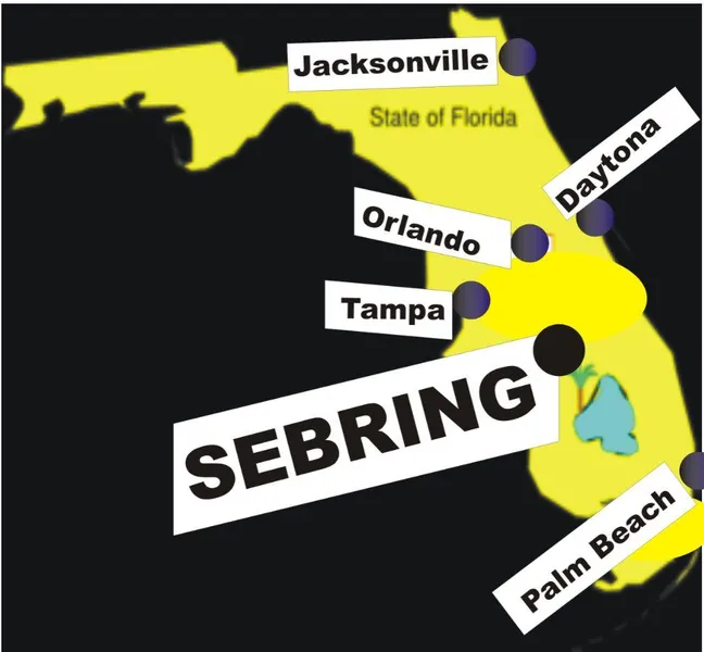 PERFECTLY LOCATED - in South Central Florida! Sebring is only 1 hr 45 min due east of Sarasota, Florida ; and the same distance southeast of Tampa. Also (centrally located) it is only 90 minutes west of Fort Pierce (north of Palm Beach) and less than 2 hours due south of Orlando!