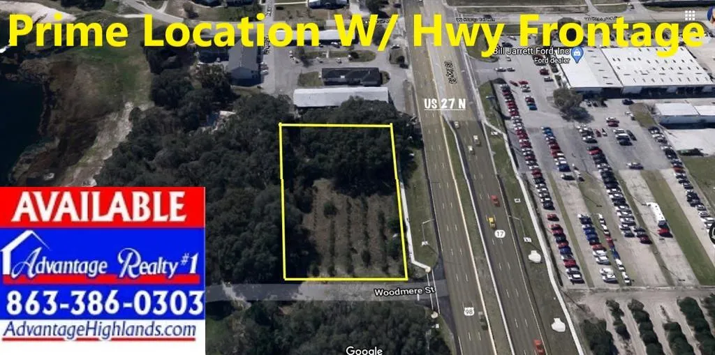 CITY WATER AVAILABLE. Prime location with 300' of HIGHWAY FRONTAGE: Three contiguous lots on US 27 N in Avon Park totalling 1.31 acres! Directly across from auto dealership and within the action of the main highway through town (AADT: 29,000). Pristine property with access via Woodmere St. makes it more desirable, avoiding required deceleration lanes and other impact costs. Zoned C2, Highway Commercial, encompassing the broadest commercial usage. City water available (contact Avon Park Utilities for cost of hookup which will depend on what is being built/developed). Septic typical in the area. Very few vacant land parcels with highway frontage in Highlands County left. Central location makes this a great spot for easy access from either coast or Central Florida. About 1.5 hr drive to Orlando, Tampa, Ft. Myers or WPB; a little longer for Ft Lauderdale or Miami.