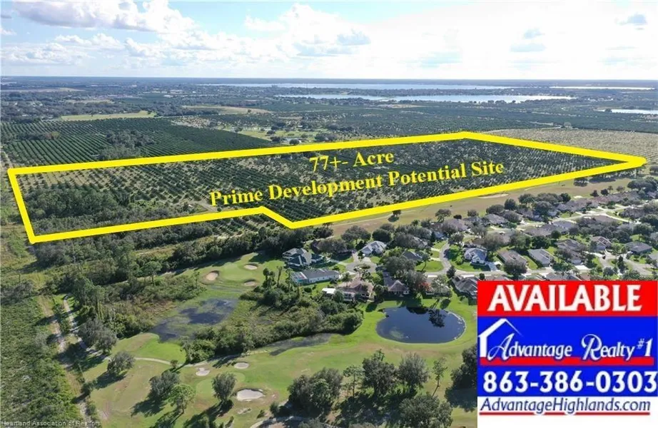 Prime 77.42+-Acre/ 2000+-Feet of Highland's Ridge Golf Course Front with Water & Sewer Development Potential Site Sebring, FL.! 2600 Feet on Beck Rd w/ potential golf course front lots on north side & wild life conservation view sites on east side all tucked away in this ideal private setting for your new exclusive community. Highland's Ridge has verbally welcomed the developer of this site to join his golf course & connect into the local municipality's utilities that currently services his golf course development. Don't miss out on this rare & exclusive development opportunity! Ideal potential developments may include:55+ Mobile Home Park mirroring the 55+ adjacent golf course community or just buy & hold for even more upside potential values as more & more people find this hidden paradise here in the Heartland. Zoning is currently Ag(producing citrus grove) with the buyer to make it what he wishes subject to approvals, of course. (Potential Development Metrics if successfully rezoned (R1): Sale Price: $1,548,400 Density: 2.4units/ac Total Acreage: 77.42 Total # of units: 184+- $/unit: $8,415) The surrounding mobile home parks/ Resorts: Lake Bonet, Lake Letta have waiting lists of tenants & regularly increasing rents more than doubling their values over short intervals.