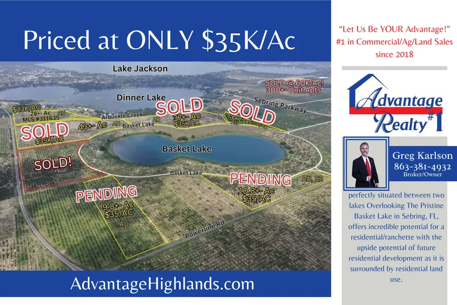 Research Parcel InformationFrom Hammock Rd and US 27. Head northwest on US-27 N/US-98 N, Slight right onto Lakeview Dr, Turn left onto West Blvd, Turn right onto Sebring Pkwy, Keep right to continue toward Sebring Pkwy, Merge onto Sebring Pkwy, Turn left onto Home Ave, Turn left onto FL-17 N, Drive to Basket Lake Dr, subject property is on the right.