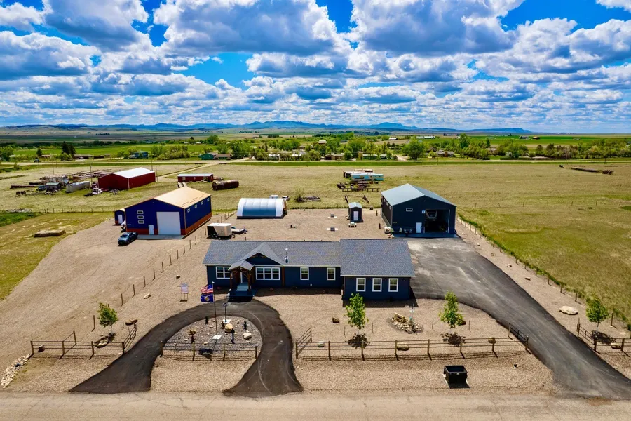Experience refined Montana living in this stunning estate designed for both elegance and function! This property offers a seamless blend of high-end finishes, expansive living spaces, and exceptional amenities that elevate everyday living into a lifestyle. Step inside the 1,680 sq. ft. home, where an open-concept floor plan creates a bright, inviting atmosphere. The kitchen showcases granite countertops, a spacious island with seating, and stainless-steel appliances, while the adjoining living room features a cozy gas fireplace. The primary suite offers a walk-in closet and spa-like bathroom, complete with a walk-in shower. Two additional bedrooms, a full bath, a large laundry area, and radiant in-floor heating throughout ensure comfort in every season. Park your vehicles out of the elements in the attached three-car garage with radiant floor heat. Need some sunshine therapy? Outdoor living is just as inviting, with a covered deck and gazebo, a dedicated BBQ area with stainless vented hoods, and low-maintenance landscaping-ideal for both year-round enjoyment and seasonal living. Beyond the home, this property boasts a remarkable 42' x 60' heated shop, insulated to R50, complete with a bathroom, shower, mezzanine loft, and deck with views of the Bears Paw Mountains. Whether used as a workshop, man cave, or guest space, the shop expands the property's versatility. A 30' x 35' storage building provides additional room for boats, RVs, or recreational gear. A 10' x 20' sealed building houses the cistern, while mature trees are fed from water from a pumping system in the shop.