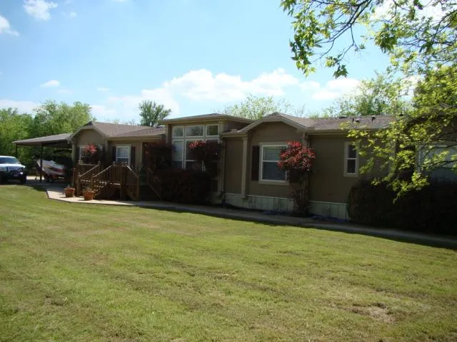 27 acres more or less with beautiful 3 bedroom/3 bath double wide home, one of the best built with extra wide walls and floor joist. Almost 2,500 sq.ft. of living area, fireplace, 2 living areas, huge open kitchen with island. Covered porch on all the back side of home overlooking pond and land. fenced for pets, horses, cattle, etc. water to all fenced areas, 2 car carport with concrete slab and workshop with additional space upstairs and extra room in shop. Excellent and productive soils for improved grasses, garden and for crops. Close to town and the lake.