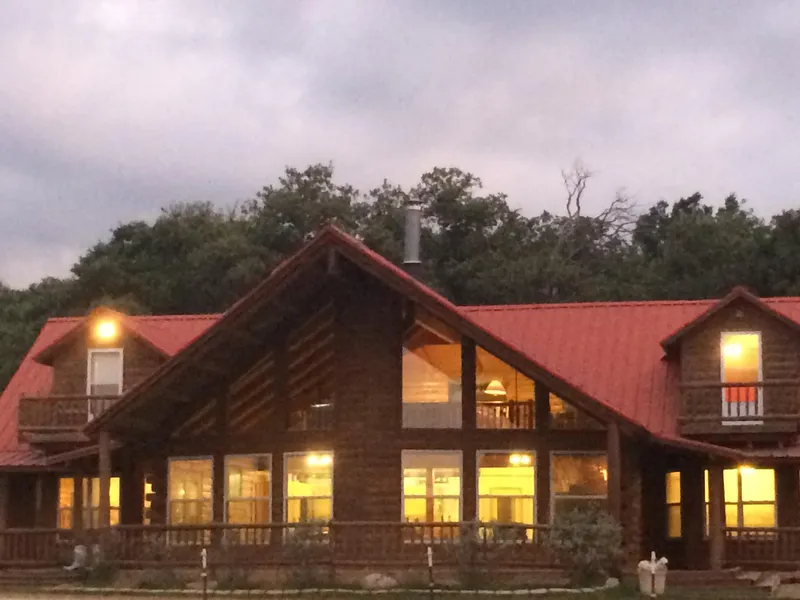 Features 4 Bedrooms, 2 Baths, Large Master Bedroom and Bath with Built in Storage, Walk-in Closets, Custom Beams, and Logwork, Austin Stone, Wood Burning Stove, 2 Balconies, Covered Porches, and a Coy Pond with Waterfall.