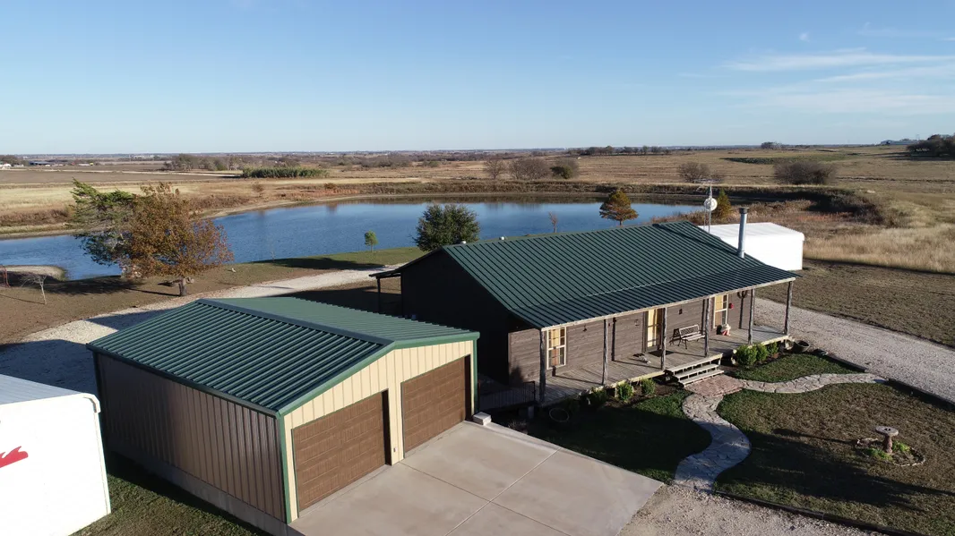 NEED TO ESCAPE TO THE COUNTRY? Come relax on the back porch to watch the sunrise on this 33 acre tract of land with a stocked 7 acre pond! This beautiful pasture land is completely fenced. The property comes with a wood frame 2 bedroom, 2 full baths home with porches in front & back of the house. The home features beautiful mahogany wood floors and walls throughout the home. Living room has a wood burning fireplace. In the kitchen, you will find a 1959 post office door and window. The kitchen has open concept, long breakfast bar, gas stove-oven, and pantry. The master bathroom has a corner jacuzzi tub. Plus, a detached 2 car garage, with a class 4 storm cellar, 2 car carport, storage bldg & storage container.