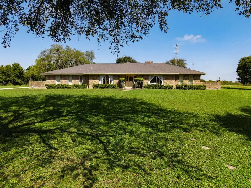 Beautiful custom-built home on 15 acres, outside city limits but convenient to town and minutes from I-35. This well-maintained 3BR 2.5B 3104 sqft home is light and bright with 2 spacious living areas, large bay windows, a vaulted ceiling in the den, and ceramic tile flooring throughout much of the home. Bonus room can be used as an office or craft room. Loads of storage space throughout including plentiful kitchen cabinets, custom cabinetry in the den, multiple hallway closets, his/hers walk-in closets in the master bath, and a large storage closet with shelving in the garage. Property has hay production and a current ag exemption. A seasonal creek and 2 seasonal tanks surrounded by mature trees create a serene park-like setting. State highway frontage.