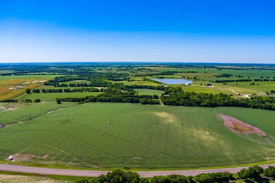 On this 36+ acres build your home under mature, old shade trees, have a nice barn with pasture & still enjoy crop income. The year round creek runs thru a section of parcel; Just close enough to hear the water trickle when the world goes quiet. Create your private sanctuary only 5 minutes from town. Unusual opportunity to find land with all the right features!!! An additional & adjacent 10 acres can be acquired as well. Custom 3900 sq. Ft. designed home plans for this parcel could be purchased. Call for further info.