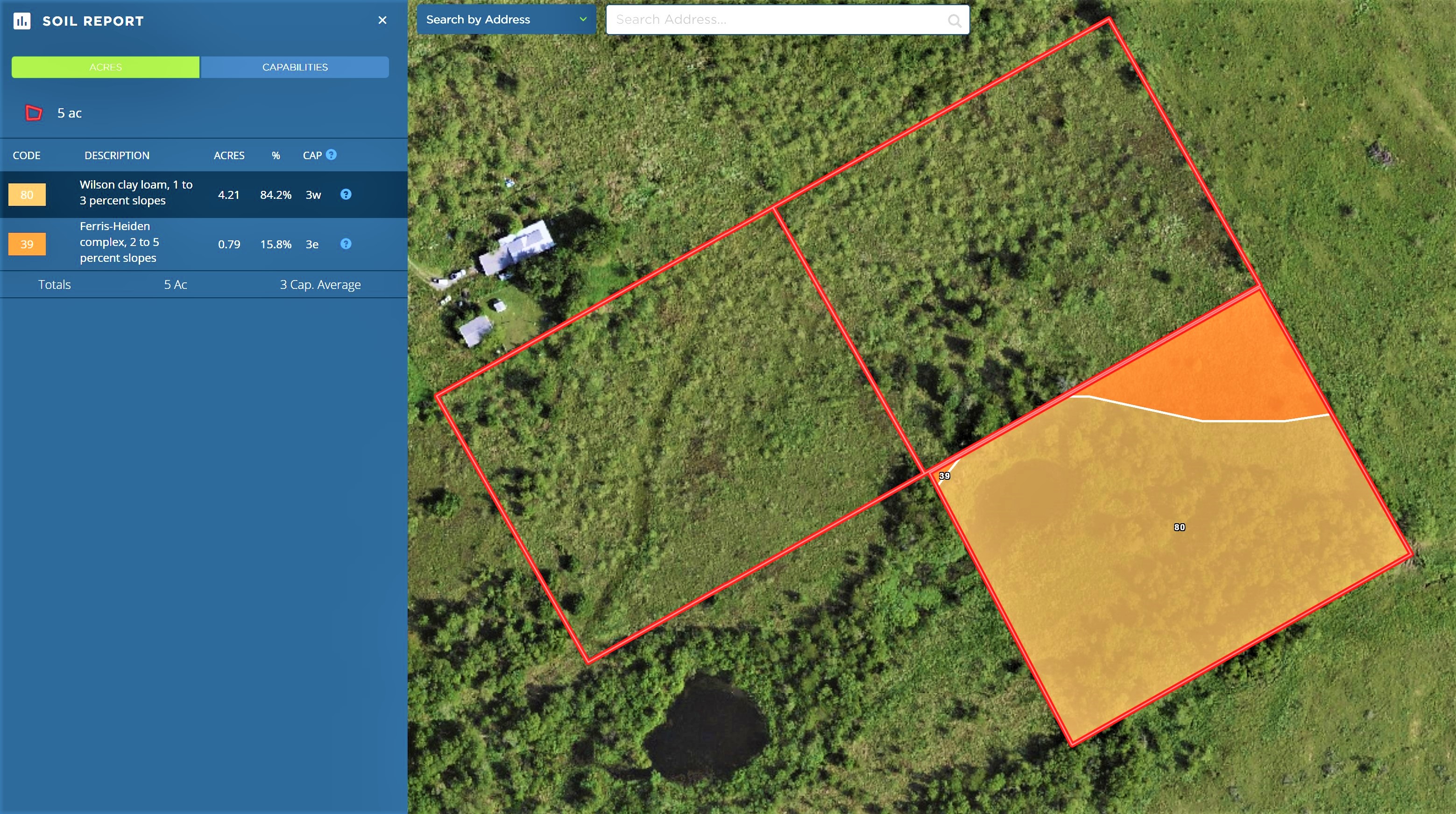 Search for detailed parcel information including; Elevation & Vegetation Maps, Ownership Information, Detailed Parcel Information, Crop History Map, Soil Survey Productivity Data, and more.
