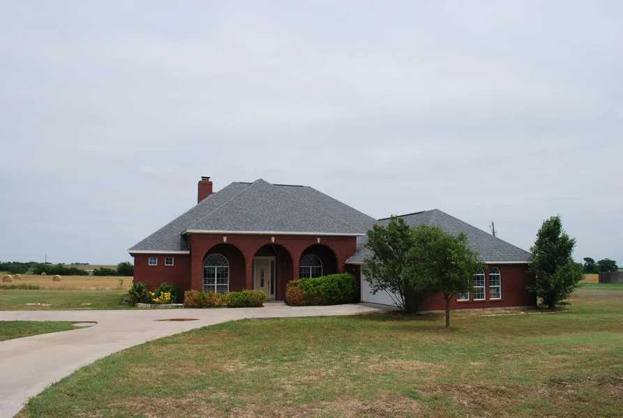 WELL MAINTAINED HOME ON A QUIET STREET. This 3 bedroom, 2 and a half bath brick home has stained concrete floors throughout the home. The family room has a wood burning fireplace with Austin Stone, surround sound and double doors leading out onto the back patio. The kitchen has granite counter tops, an island with a prep sink and a breakfast area on one end. You will love having a formal dining room for holidays and family gatherings. The master bedroom has two large walk in closets. In the master bathroom you will find double sinks and a jacuzzi tub. You are just far enough outside of town that you will not have any city taxes, but close to everything in town.