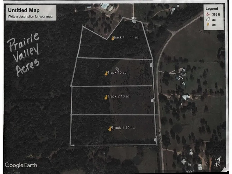 Prairie Valley Acres TRACT 1 Subdivided 10 + acres. Own a beautiful piece of land in prime location. Paved road frontage with creek access. Build your dream home with country living but still close to town. Plenty of deer and wildlife. Some cleared areas, some wood areas with lots of beautiful Elm and Oak Trees. Approx 400' of road frontage. 4 tracts total. NOTE: I have a total of 4 tracts available between 10-11 acres. All at $7750.00 per acre.