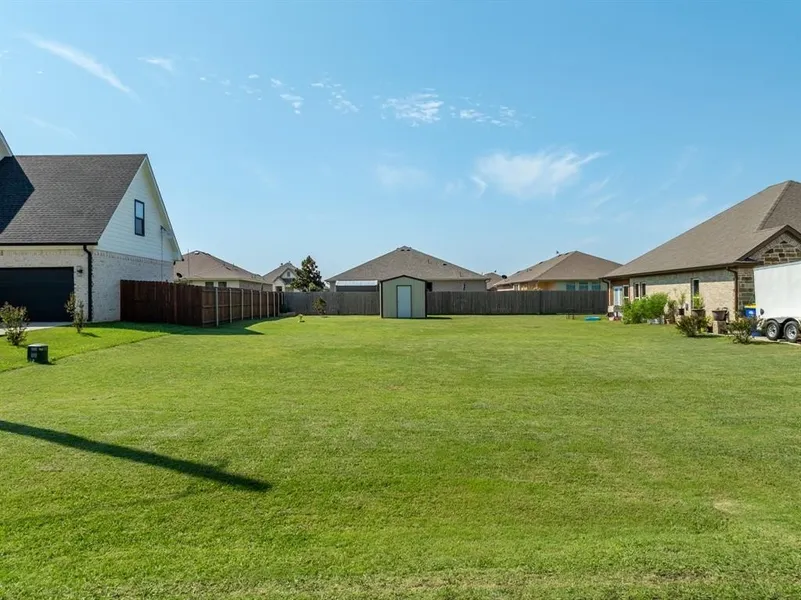 Own the last buildable lot near the Stoneridge Addition area! Nicely manicured building lot surrounded by newly built brick homes. Cohesive, desirable neighborhood close to the intermediate school, shopping, and dining! Partially fenced and level with a storage shed already in place!