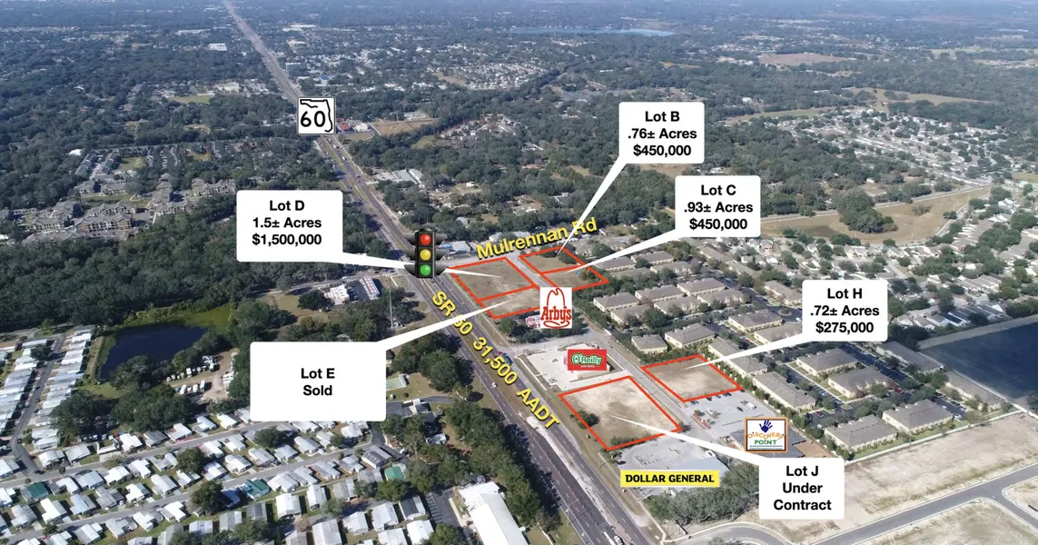 PROPERTY DESCRIPTION Join Arby's, O'Reillys, Dollar General and Discovery Point at Kings Mill Commercial in Valrico, FL. This masterplanned retail development has only a handful of outparcels remaining along SR 60 for commercial uses including medical office. The parcels are pad ready with utilities in place and master retention offsite. Seller will consider subdividing the parcels as well as ground leases, if more desirable.
