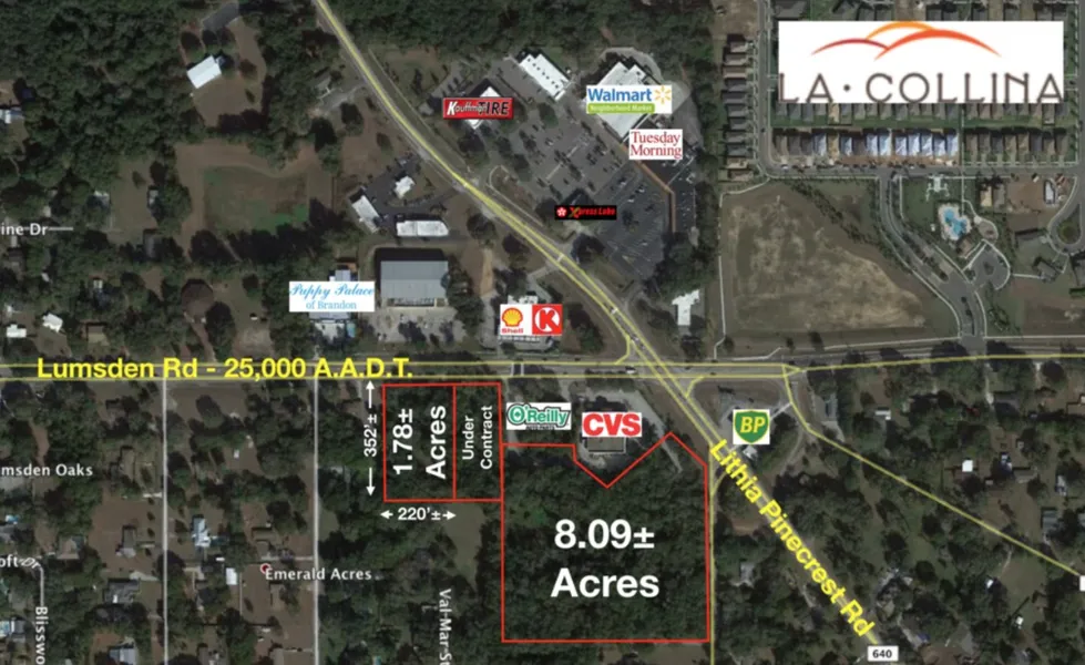 LOCATION DESCRIPTION - The parcels are located in one of the most sought-after locations in Brandon. It is west of the intersection of Lumsden Rd. & Lithia Pinecrest Rd, south and west of CVS & soon to be constructed O'Reilly's Auto Parts on the south side of Lumsden.